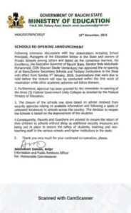 The initial closure in November was based on necessary security precautions following concerning incidents nationwide. However, the Commissioner for Education confirmed that a significant improvement in the security situation in the state prompted the reversal. The safety of students and staff remains the government’s highest priority.